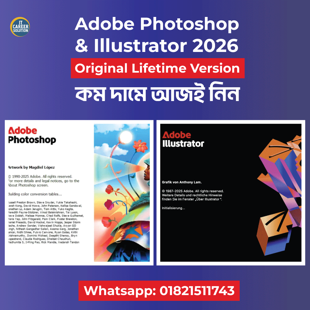 তাহলে আপনার জন্য নিয়ে এসেছি Adobe Photoshop 2026 & Adobe Illustrator 2026 এর Original Full Version 💻✨